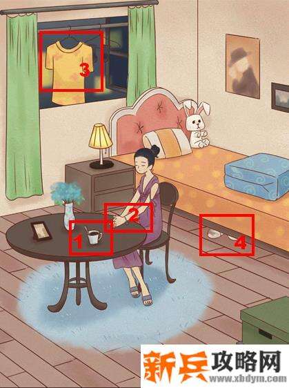 依次点击提交桌上的咖啡、窗外的衣服、女人的手、床底染血的鞋子。