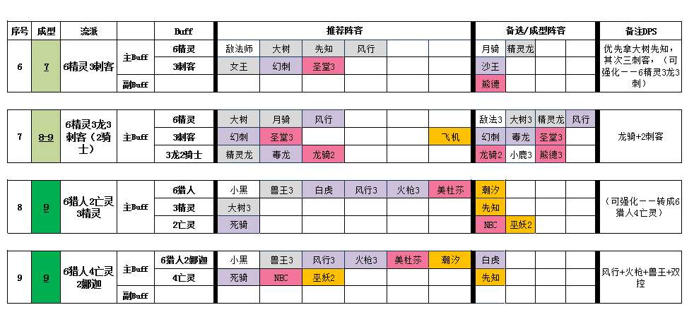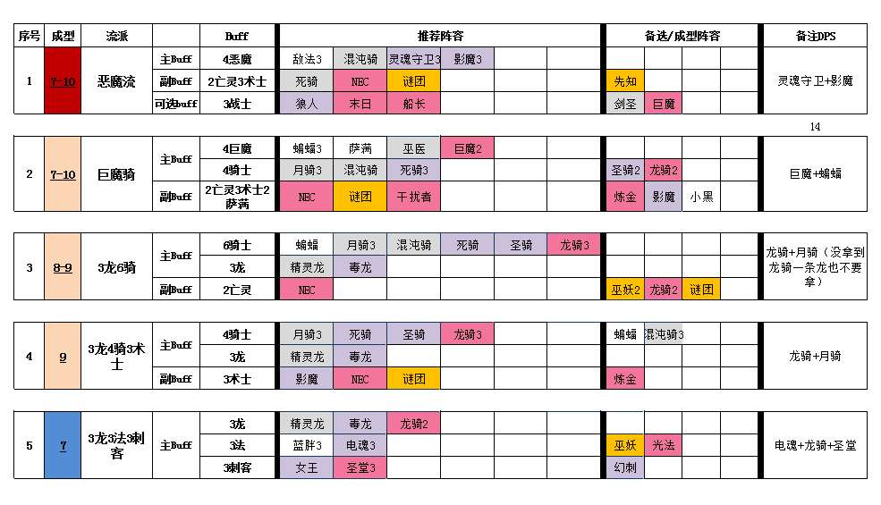 解释下第二种牌。6精灵6骑士都是又硬又缺伤害的,月骑作为输出位可考虑升3。龙骑不用说,无论哪个阵容都是主力,拿到3只不用想直接三龙走起,拿的少,也卡人家一手,差不多了再卖掉。死骑本身是较好的肉盾,亡灵猎、骑士流,都怪亡灵全员减甲太实用太好凑。NEC我个人喜欢同死骑凑2亡灵,保护c位效果拔群。