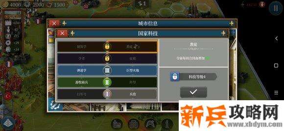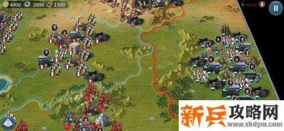 在前30回合把土耳其法国还有英国的主力部队全部歼灭。这个时候你应该也不剩什么将了。如图所示我就剩了四个将。其实炮将最后一个不剩也可以,但是有个远程还是很重要的。基本上瘟疫和急行军的比例应该在3:1左右。你的科技要是满的话,移动力足够。