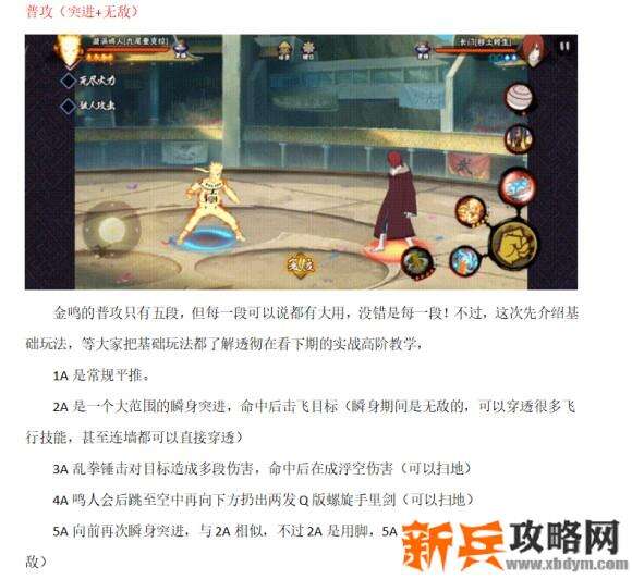 金鸣原话中使用九尾查克拉包裹全身,使其浑身金光闪闪的一种形态,该形态对鸣人的加持最明显的就是速度的体现,甚至能与速度极快的雷影一较高下,这次火影手游作为高招A更是完美的还原了金鸣的特点,在决斗场神出鬼没难以追寻踪迹,上限可谓是目前高招A当中最高的一位,想要玩好,不妨慢慢先来了解下!