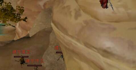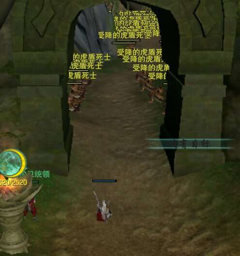 然后拉着他们到了地图第一个红旗的地方,左手边的台阶上可以卡住小怪,如图