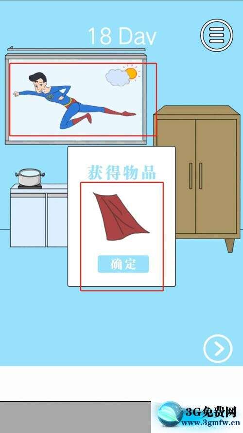 点击窗户。等超人飞过,获得他的红披风,把红披风移到第二页的树上。点击糖果