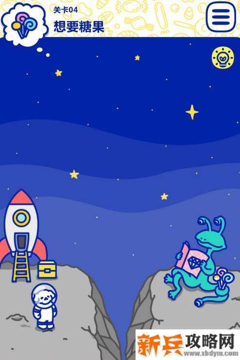 2、点击获取梯子,把梯子放在裂开的中间位置,再点击外星人旁边的糖果即可。