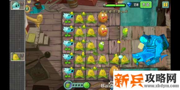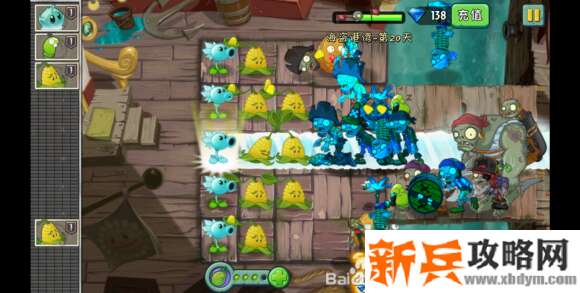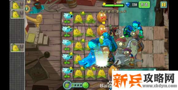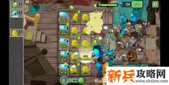 1. 开头的两个路障用寒冰射手和玉米投手轻松解决。
