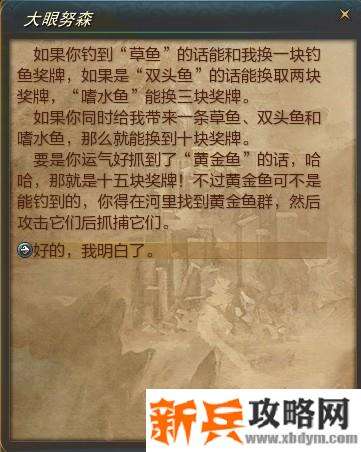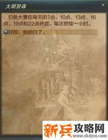 钓鱼大赛,在自由港外面的“大眼努森”处参加,NPC在每天的上午7点,10点,下午的13点,16点,19点和22点才会出现。