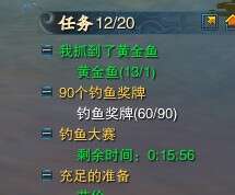 点击NPC会显示让你钓鱼,还给你一根钓竿,但是你千万别傻傻的站在那里钓鱼,因为活动时间每次一小时,接任务后完成时间只有30分钟,钓鱼是不可能掉到250个奖牌的。