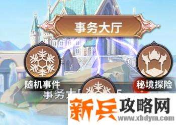 随着游戏进程事务大厅共会开放三个入口,分别是随机事件,雪域探险以及秘境探险