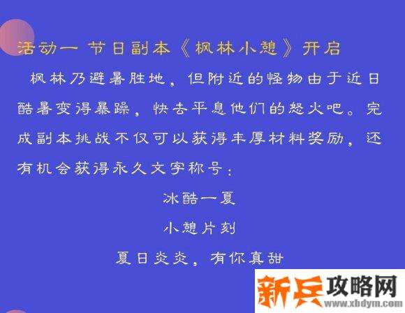 御剑情缘枫林小憩节日副本攻略