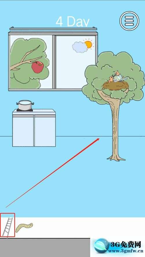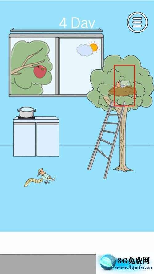 点击窗外树上的苹果,拿到小虫子。点击获得梯子,把梯子架到树上,把虫子移到树上,最后点击糖果
