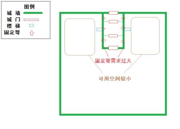 凸城虽然不占用城内空间,有向外发展空间,但是无法发挥固定弩作用,且外城门难以支援