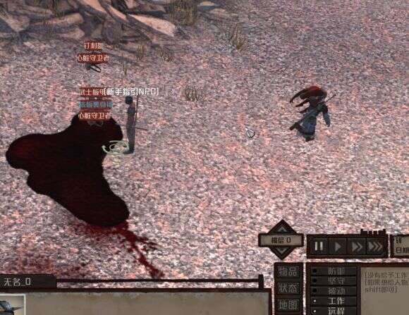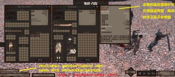 守卫摧枯拉朽干掉了强盗,NPC冒着风险上去摸装备,一定要快,不然守卫会把强盗扛走的,东西捡起来先丢地上