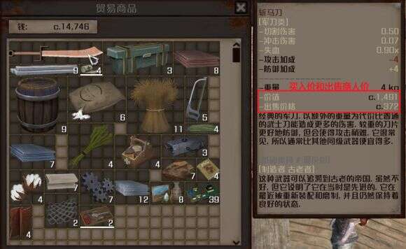 NPC突然发现货柜上自己当初典当出去的大刀,想到二妹子还缺一把双手武器
