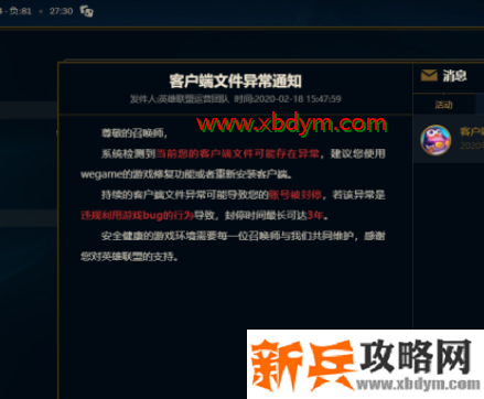 时间:2020-08-24 17:51:38 来源:新兵攻略网 阅读:LOl客户端文件异常被封号怎么回事_lol客户端资源文件存在异常16-5解决方法
