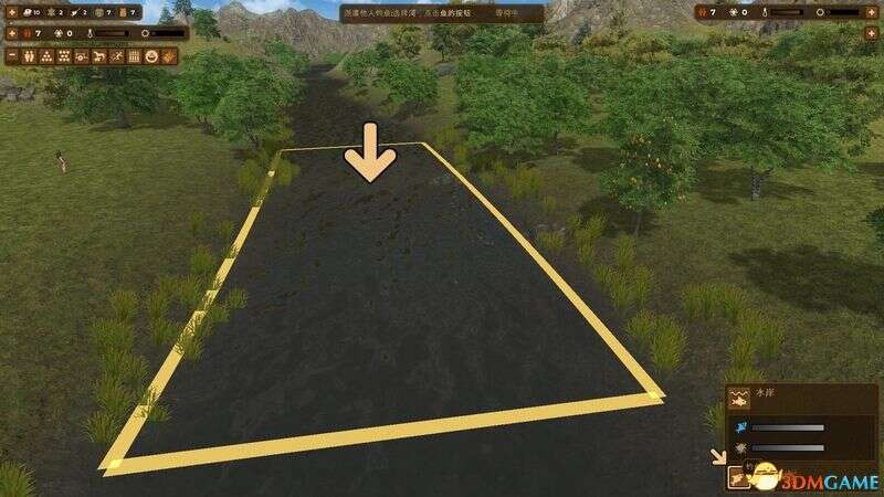 特别提醒:渔场的工作区中心必须在河岸上,河里是不行的。