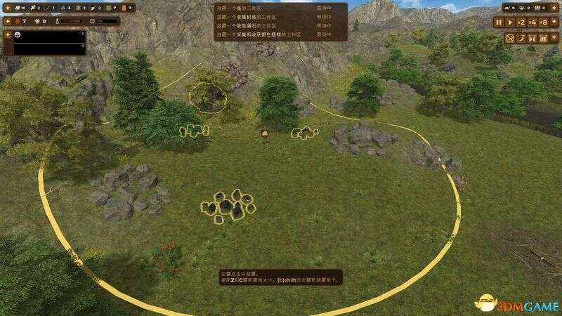 按住SHIFT你还可以连续设定多个工作区,修建建筑也是如此。