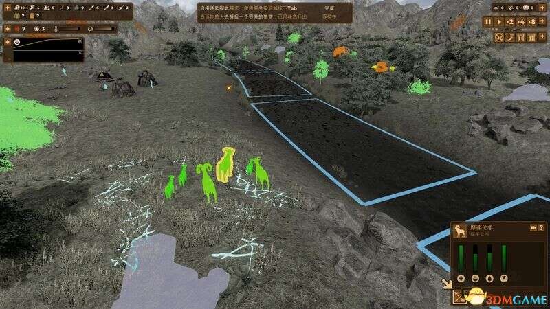此时可收集的动植物就以不同的颜色高亮显示在屏幕上。