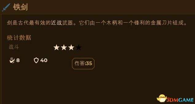 更进一步发展你还可以制作铁剑。大大强化战斗伤害(35伤害)能力。