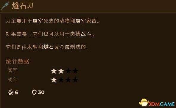 例如燧石刀,可以加快屠宰速度(1.5倍速)。