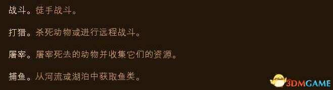 屠宰和收获用于获取肉类和植物,1星代表其获取速度(1倍速),比较低。