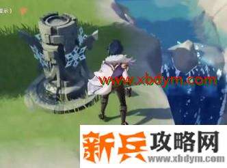 事先没有探索到这的话也没关系,直接过去把风神像点亮就可以了,然后我们来到温泉瀑布的左上方,就可以看到三个冰柱,用凯亚开个大招全部点亮,就可以获得藏宝地点了。