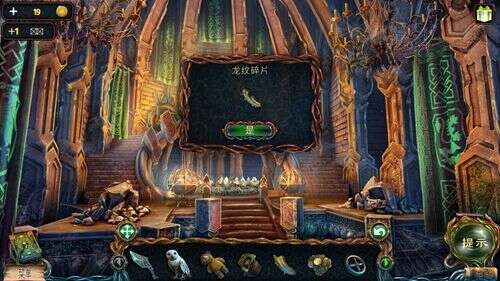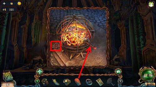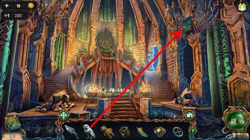 点击道具栏中的猫头鹰,再点击右侧柱子上面的碎片。