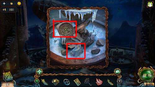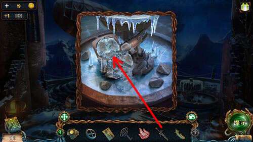 在喷泉中会出现一个镶嵌宝石的图案,记住这个图案。点击喷泉下面的冰块,可以获得一个冰块。。