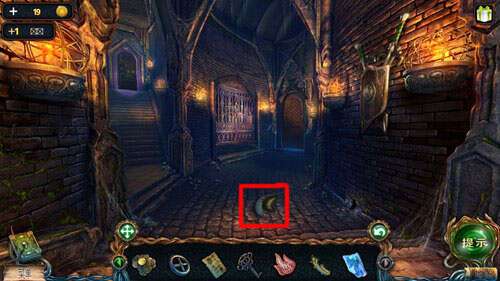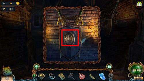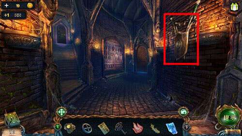 在走廊的右边墙壁上有一个盾牌,点击这个盾牌。