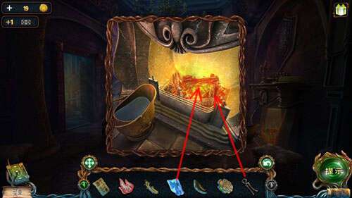 先把冰块放入火中,再点击钳子,放入火中把冰块融化后的雕像夹出来。