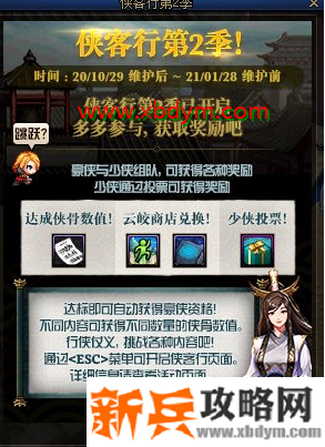 首先玩家们参加侠客行第二季的活动,组队通关的话就可以获得峡谷数值。玩家需要寻找云皎NPC,和他对话,然后就会弹出来一个商店,在里面兑换奖励即可。我们来看看奖励的内容吧: