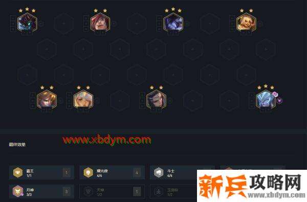 5.在月神牌全部到三以后我们可以拉人口一路到八,随后根据手中的天选来补足阵容。(月神天选补ez,耀光天选补永恩)
