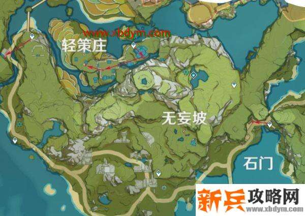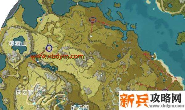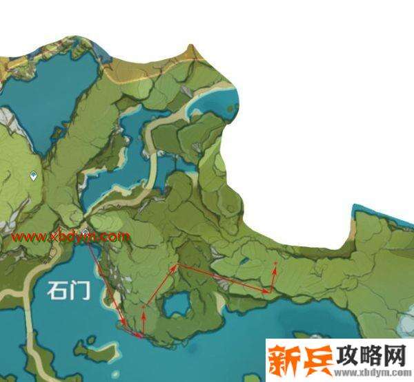石门东一条线路两个调查点(路线较复杂,收益较低,但因目前圣遗物经验短缺,现补上):