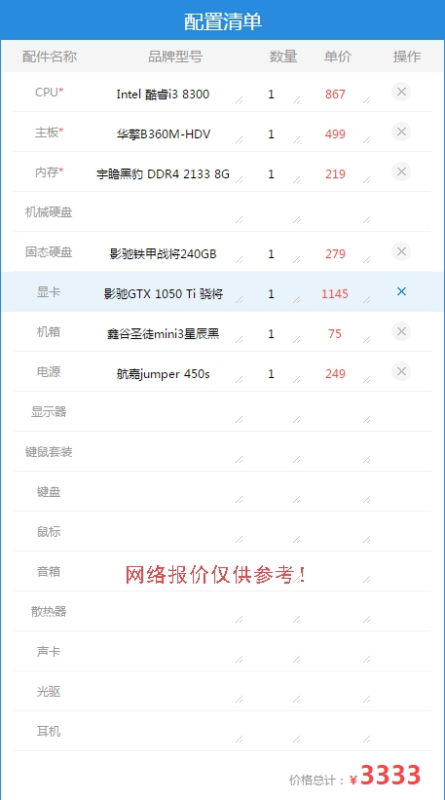 下面分享3000元左右的吃鸡低配套餐: