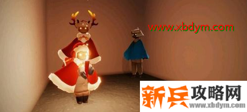 需要玩家有TGC斗篷才能进入,不过也可以直接卡进去,然后玩家可以在小蓝的旁边,然后看到这个有鹿角的先祖。