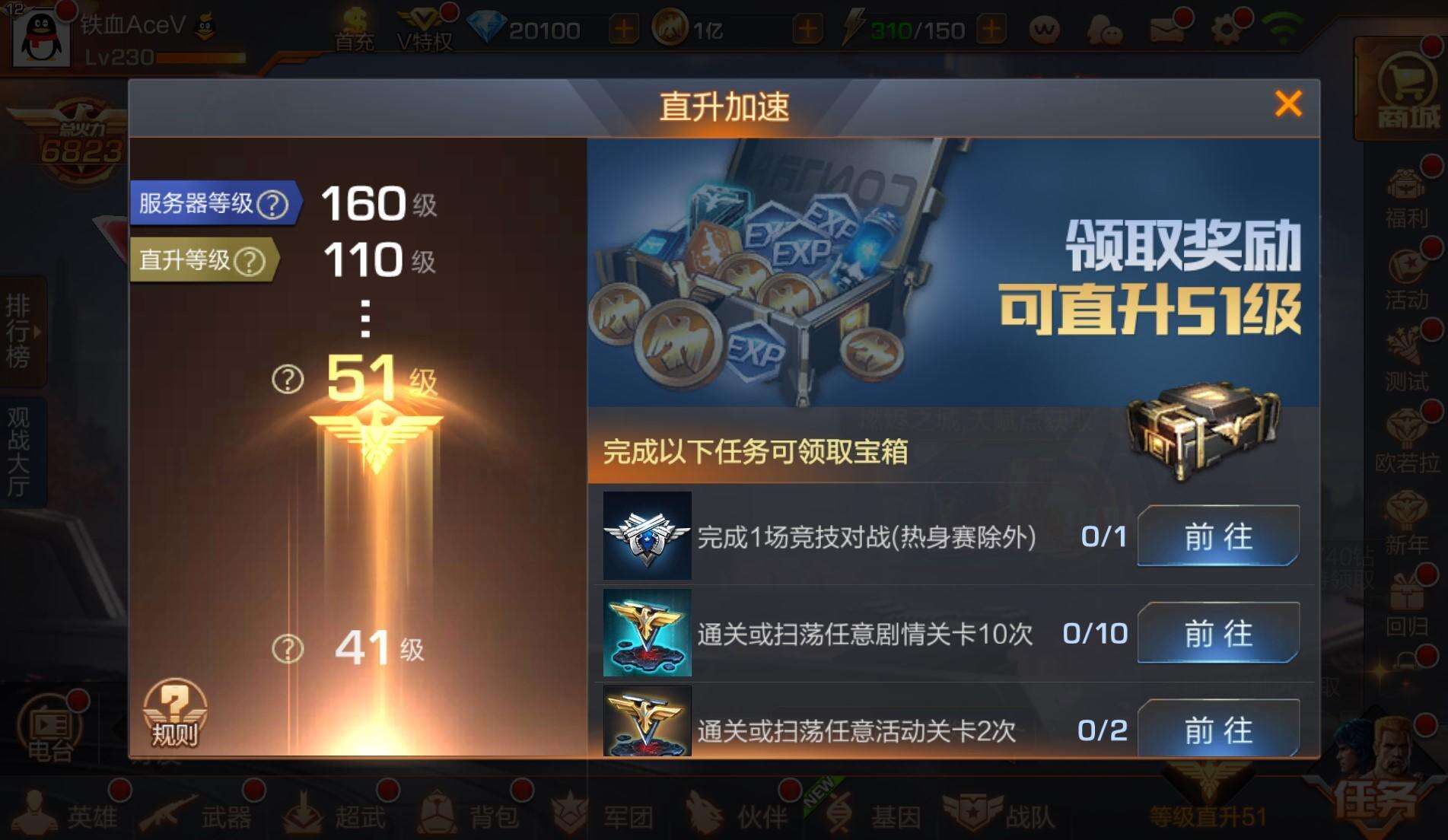 等级直升:当玩家低于服务器等级较多时,会优先开启等级直升功能。完成指定的任务即可领取直升奖励,快速升级的同时也将同步获得大量的!