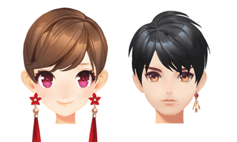 女生的耳饰是火红的梅花,搭配长长的流苏,古香古色,衬托出女生柔美的气质,同时也透出喜气洋洋的气氛。男生的耳饰是晶莹剔透的红色水晶珠搭配金色吊坠,吉祥富贵。