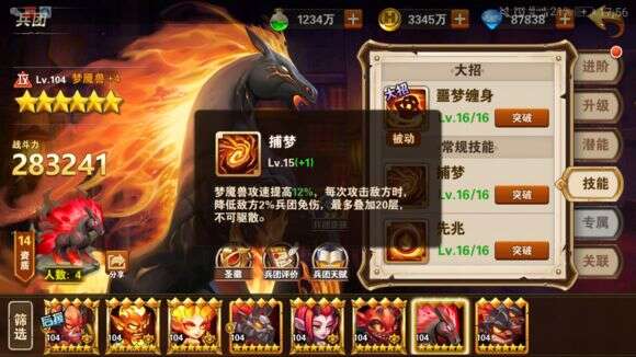 1、主力输出C位“娜迦女王”(由于圣龙会阶段性的释放寒冰吐息,会导致所有兵团在其时间段内无法进行有效输出,格鲁提供的100%命中无用),但娜迦的绝对命中不受影响,所以请把资源全力堆在娜迦身上。不会让你失望。推荐圣辉:嫉妒,推荐觉醒技能选择:左右右