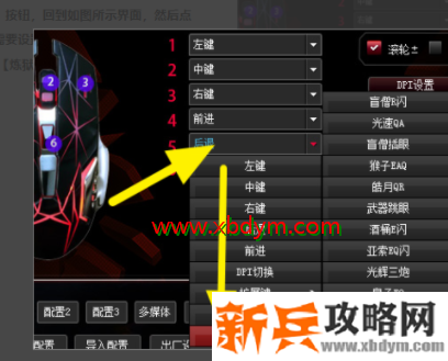 6、保存好设置的宏后,点击界面导航栏的【基本设置】按钮,回到如图所示界面,然后点击自己需要设置的鼠标键,再依次选择【宏定义】-【炼狱】。