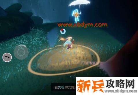 1、进入雨林光菇图,在右边的山坡上点燃雨伞先祖;