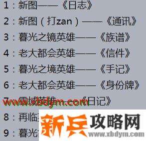 新图隐藏任务线索直接按照下图的顺序慢慢刷就可以了,仅供大家参考哦: