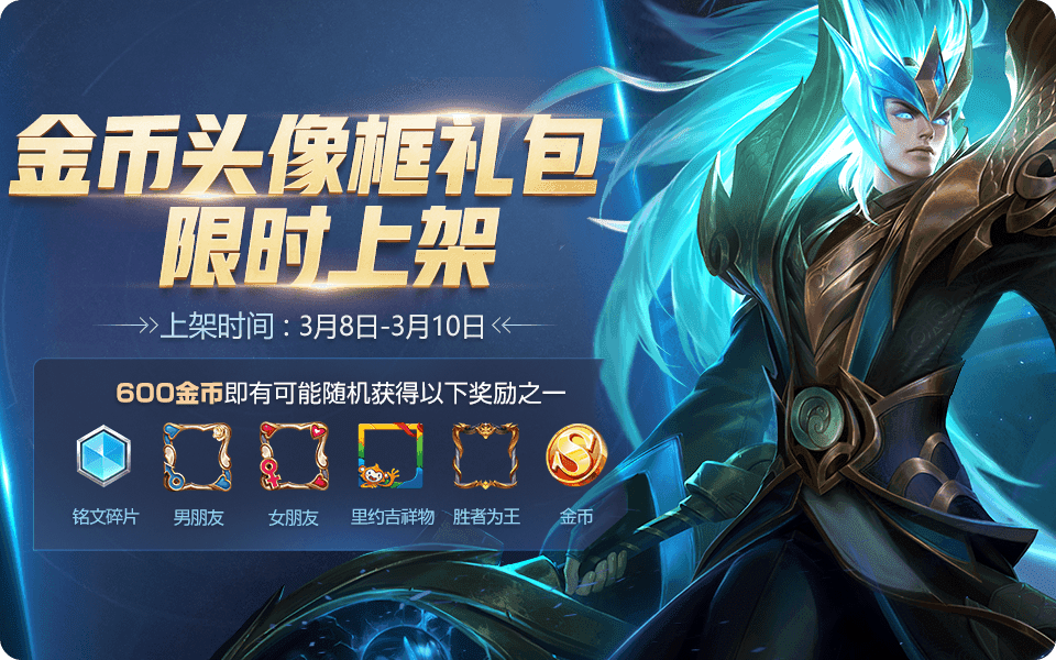 打开后可获得以下奖励之一:男朋友头像框、女朋友头像框、里约吉祥物头像框、胜者为王头像框、金币*600、铭文碎片*128/88/58。