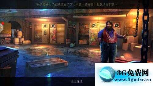 进入【仓库场景】,点击红衣服的人,得知要帮忙修好锅炉房的故障;