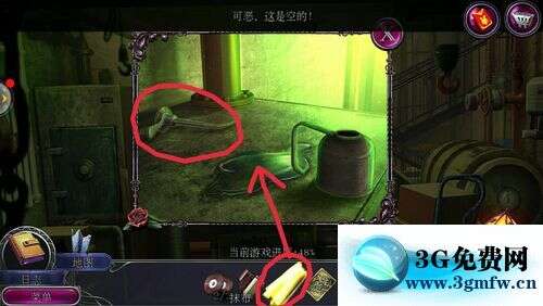 点击左边保险柜顶部,用【抹布】吸取油,将油挤在油壶里;
