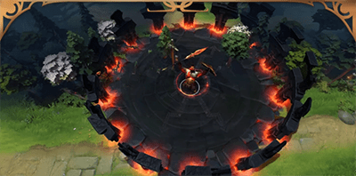 玛尔斯召唤出环绕着余烬军团亡灵战士的竞技场,战士们将阻挡敌人的攻击和动向。敌方英雄靠近竞技场内侧边缘将被战矛攻击,受到伤害并被击退。