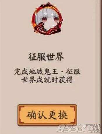 阴阳师征服世界头像框获取攻略: 完成地域鬼王-征服世界成就可获得征服世界头像框。 征服世界头像框为动态头像框,给角色装备上有动态效果。此外还有征服世界的印记。