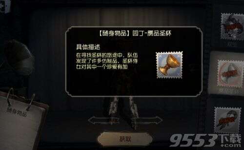 第五人格赝品圣杯怎么获得 获取途径 第三赛季精华2 穿戴方法 点击右下方笔记本,打开人物界面--对应人物--左侧相片--随身物品,点击“携带”进行穿戴。
