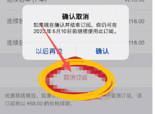 接着点击取消订阅就可以了,这样下个月就不会自动扣费了