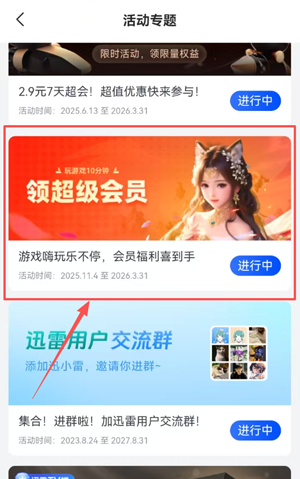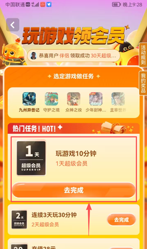 点进去就可以看到这个活动了,游戏嗨玩乐不停,会员福利喜到手,只需要体验十分钟游戏就可以领取一天会员。