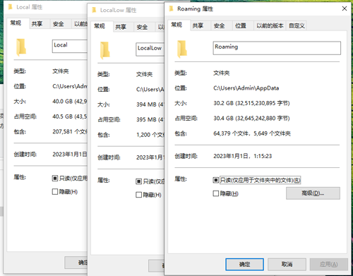 C盘的AppData文件夹是Windows系统中存储应用程序配置、用户数据和临时文件的地方,它主要包含了软件的设置、缓存、用户数据等关键信息,乱删除里面的文件确实会导致软件崩溃或系统异常。小编看了下AppData文件夹竟然足足占用了70个G的空间,可见这个确实非常占内存。...