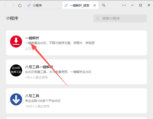 刷抖音找到一条不错的素材,可对方没有打开下载,那么有什么其他办法可以下载下来呢,今天小编教大家如何解决这个问题。首先我们打开微信小程序,手机版微信和电脑版均可。按照图片一样搜索“一键解析”...